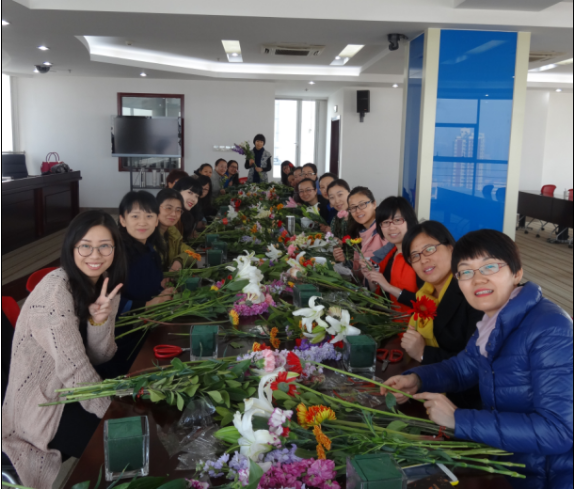 3月6日,國富投資集團十八樓大會議室內花香四溢、春意盎然,一場別開生面的慶祝“三八婦女節”插花藝術培訓活動正在這里熱鬧舉辦。