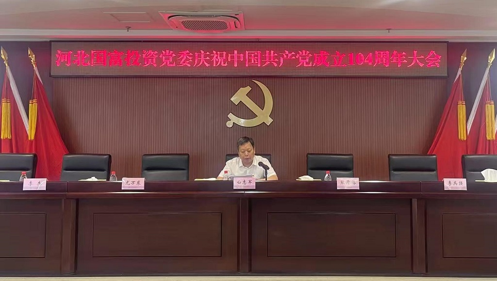 7月1日,河北國富投資黨委召開慶祝中國共產黨成立104周年大會暨深入貫徹中央八項規定精神學習教育專題黨課。公司領導班子成員、中層及以上黨員干部、獲得“兩優一先”榮譽的黨員和預備黨員代表參加了會議。