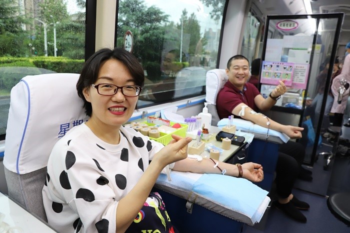 “河青號”愛心獻血車是河北青年報社與河北省血液中心共建的一輛流動愛心獻血車,可以現場安全采集全血。上午9:30,國富投資集團18名員工走上“河青號”獻血車,他們紛紛擼起袖子,排隊、化驗,等待奉獻愛心。“回去后多喝水,我叫食堂給大家燉肉吃!”國富投資集團黨委副書記韓繼普給大家鼓勁兒。